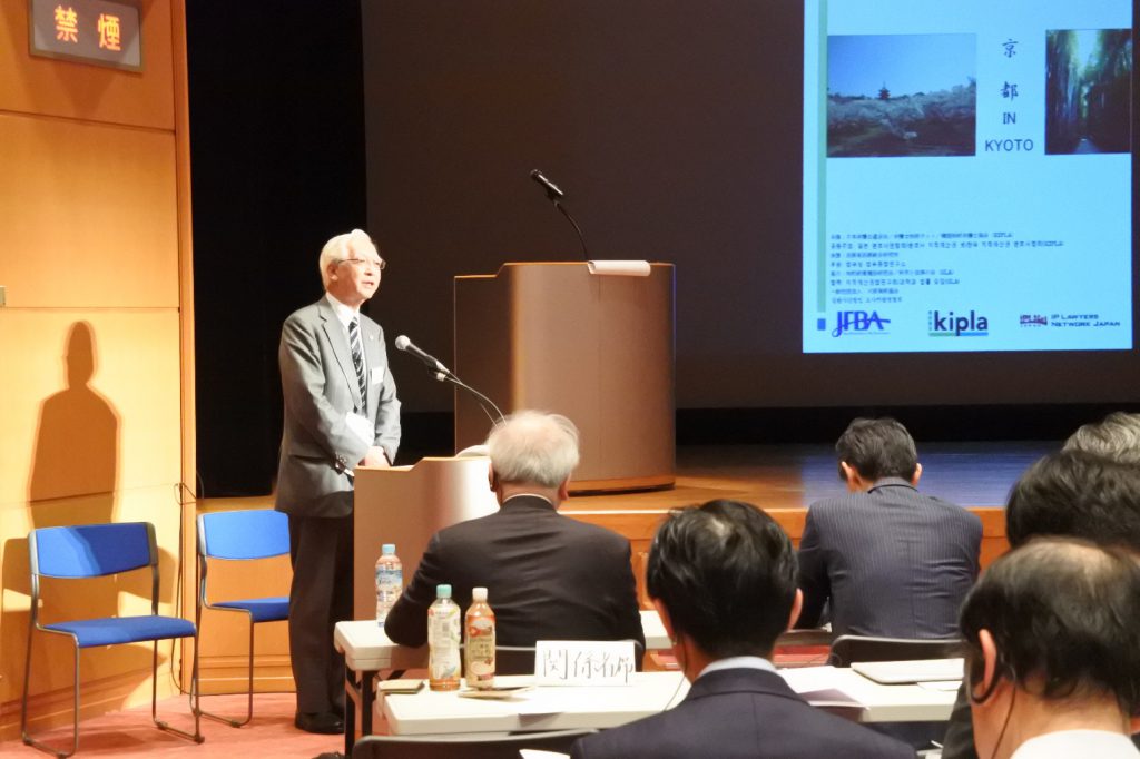 まず、小松陽一郎弁護士知財ネット理事長(当時)から、「平成29年(2017年)4月下旬にKIPLAのお招きにより弁護士知財ネット及び日弁連知的財産センターの訪問団がソウルを訪問してちょうど1年。今回は京都の地で日弁連も共催団体となり、法務省法務総合研究所にもご後援を頂き、知財高裁所長を始め日韓両国の知財裁判所の立役者が4名も参加して頂いて本シンポジウムが開催できたことは大変意義深い」との開会挨拶がなされました。